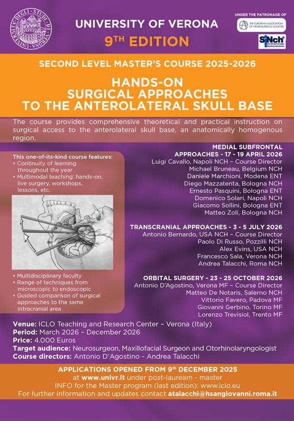 9th Edition of the Second-Level Master’s Program “Hands-on Surgical Approaches to the Anterolateral Skull Base, Reconstruction, and Indications